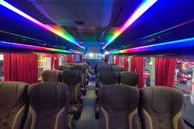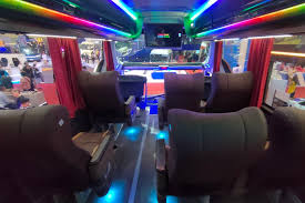 🚌 Interior modern dan elegan dengan pencahayaan LED berwarna yang menghadirkan suasana mewah dan nyaman sepanjang perjalanan.